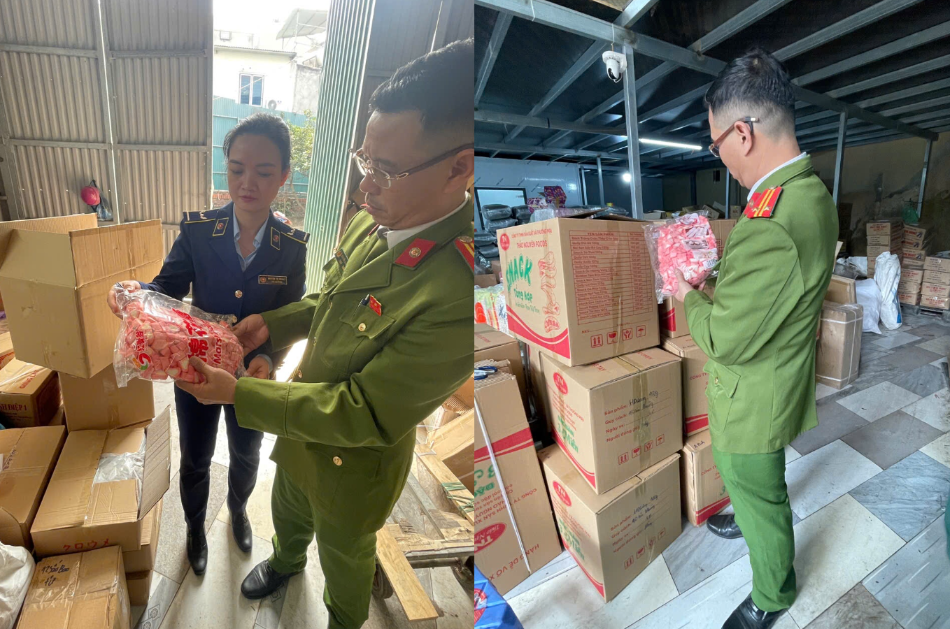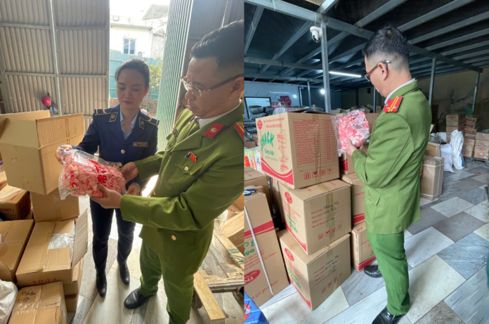 Qua kiểm tra thực tế đối với một số mặt hàng thực phẩm được bao gói sẵn đang bày bán tại cơ sở, Đoàn kiểm tra phát hiện và ghi nhận có một số hàng hóa gồm: 16 thùng kẹo xốp dẻo (5 gói/thùng; 1kg/gói); 02 thùng ô mai đào bổ (4 gói/thùng; 5 kg/gói); 10 thùng ô mai đào xí muội (10 gói/thùng; 2 kg/gói) do nước ngoài sản xuất và 08 thùng mứt vỏ cam (5 gói/thùng; 5 kg/gói), không nhãn mác, không có căn cứ xác định được nguồn gốc nơi sản xuất hoặc xuất xứ của hàng hoá. Tổng trị giá số hàng hóa vi phạm theo giá niêm yết là 44,2 triệu đồng.