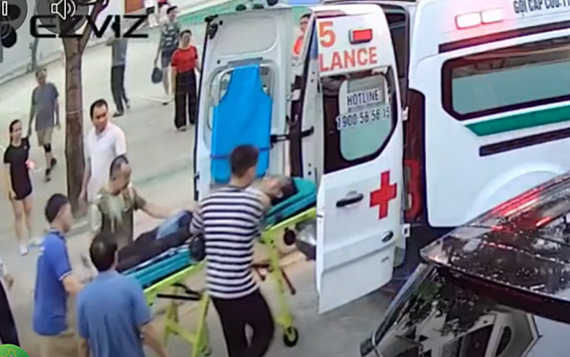 Sau khi đã qua cơn nguy kịch, người đàn ông được đưa đến bệnh viện để tiếp tục chữa trị (ảnh chụp từ clip)
