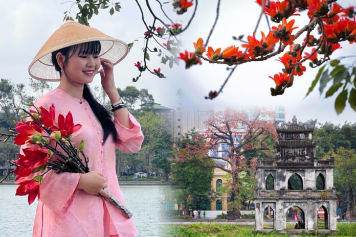 Những ngày tháng 3, Hà Nội bước vào thời điểm chuyển mùa với nhiều loài hoa nở rộ như hoa ban, hoa phong linh, hoa sưa…, tạo điểm nhấn cảnh quan trên nhiều tuyến phố. Trong bức tranh chung ấy, sắc đỏ của hoa gạo bên Hồ Gươm tiếp tục thu hút sự chú ý của người dân và du khách, trở thành một trong những điểm check-in nổi bật tại khu vực trung tâm Thủ đô.
