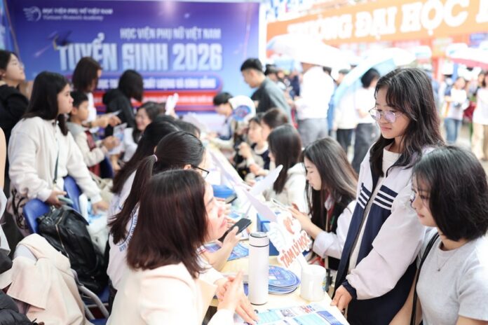 Học sinh tìm hiểu ngành học tại Ngày hội tư vấn tuyển sinh 2026. Ảnh: Văn Hiền.