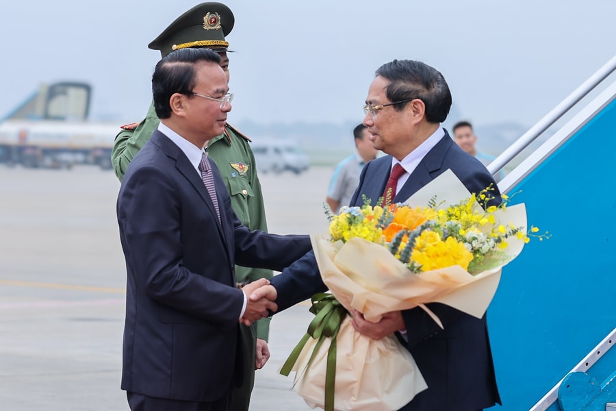 Phó Chủ nhiệm Thường trực VPCP Đặng Xuân Phong đón Thủ tướng tại sân bay.